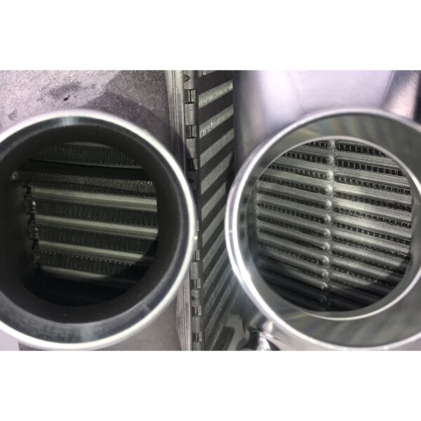 The advantage of a rolled tube core is the rounded edge which allows airflow to travel around the tube face and into the intercooler core for maximum airflow and heat dissipation (Compared to the OEM flat face tube which scatters airflow when contacting the tube face). Both the OEM intercoolers and the CSF by PWR upgraded performance intercoolers are designed around 87mm thick cores with 103mm wide side channel end plates. This allows for a true plug-and-play "drop-in fit" installation that requires absolutely no modifications to install, and does not require trimming of the expensive OEM carbon fiber air ducts.