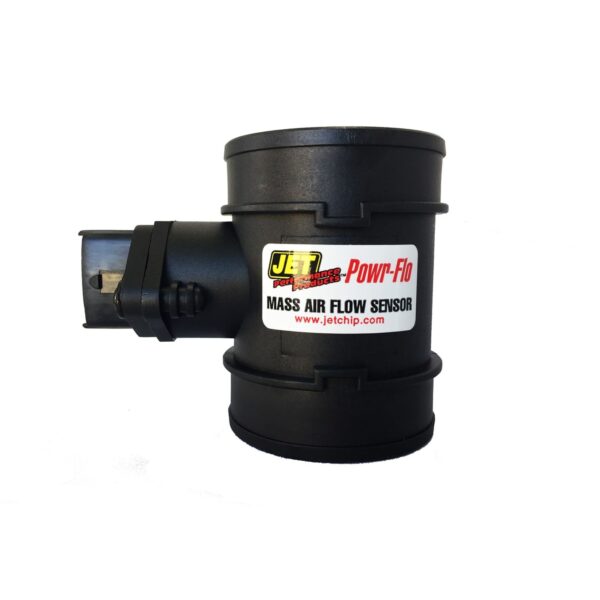 The JET Powr-Flo Mass Air Sensor delivers improved horsepower, torque and mileage from your car, truck or SUV by simply replacing the restrictive stock mass air sensor. The factory sensor not only is a major restrictive point in stock intake systems, but it also limits the full potential of aftermarket cold air intake systems. The flow bench tested design of the JET Mass Air Sensor provides airflow increases of up to 45% and installs in 10 minutes or less. Compatible with other aftermarket upgrades such as computer upgrades, cold air intakes, TBI spacers, free flow exhaust systems, etc. Up to 13 more hp over stock mass air sensor and Improved Mileage