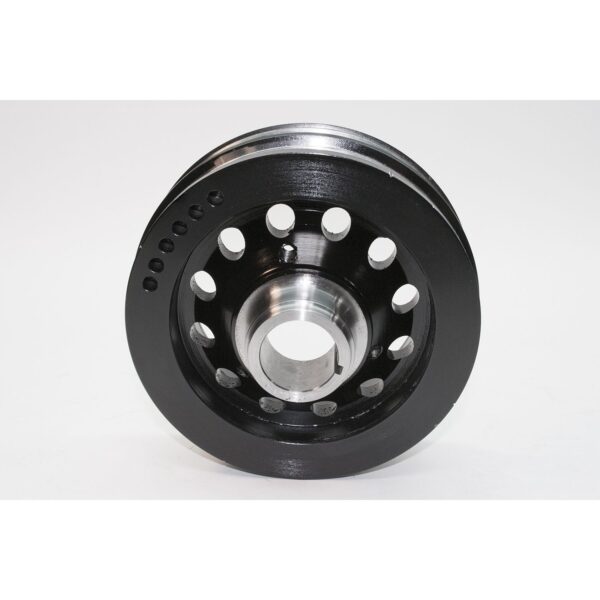 PRW SFI Certified steel dampers are perfect for the weekend warrior or the all out racer. These dampers can be used for the street, for racers that drive their vehicles to and from the track. The inner hub and outer ring are manufactured from high quality billet steel forgings, with elastomer injected between the two component parts. The hub and the ring are manufactured with inner and outer ridgelines that secure the outer ring to the inner hub. These products are available in black epoxy or polished steel with an epoxy clear coat.