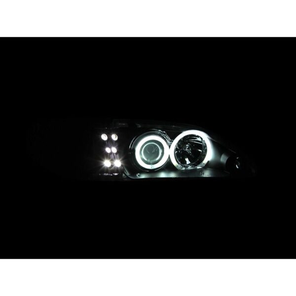 Projector Headlight Set, w/Halo, Clear Lens, Black Housing, Pair, CCFL, 1 pc. Guaranteed To Improve Your Vehicles Appearance. Rigorously Tested For Fit And Function. Simple Plug And Play. No Modifications Required. Easy Installation Using Common Hand Tools. Uses Stock Mounting Locations And Hardware. D.O.T. Compliant To S.A.E. Standards. Sold As A Pair.