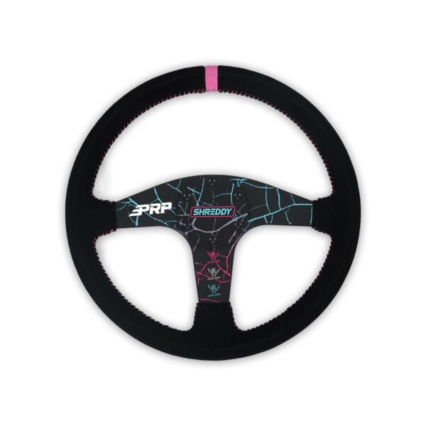 Introducing another epic collaboration between SHREDDY LYFE & PRP Seats. This Cracked Flat Dish Steering Wheel features a black suede band for superior grip, the Shreddy Cracked pattern on the spokes, and of course the classic bones shaka logos. These are very limited, so don't hesitate! Get'em now! PRP’s Steering Wheels are Built for Off-Road. Constructed from high-strength aluminum for extra durability. The steering wheel has 6 point bolt pattern, specifically chosen because it fits the majority of aftermarket quick releases. 10/10 will make you shred more. Make sure to pair it up with our entire line of Cracked Seats, Storage Bags, and Harnesses. FEATURES Made from high-strength aluminum 6 Point Bolt Pattern – Most common in off-road industry quick release adapters. Durable, moisture-resistant Black Suede andPink Stitching Black Cracked pattern spokes Includes hub bolts MEASUREMENTS: Diameter – 13 inches Depth – 1.5 inches (Flat Dish) Weight – 2 lbs