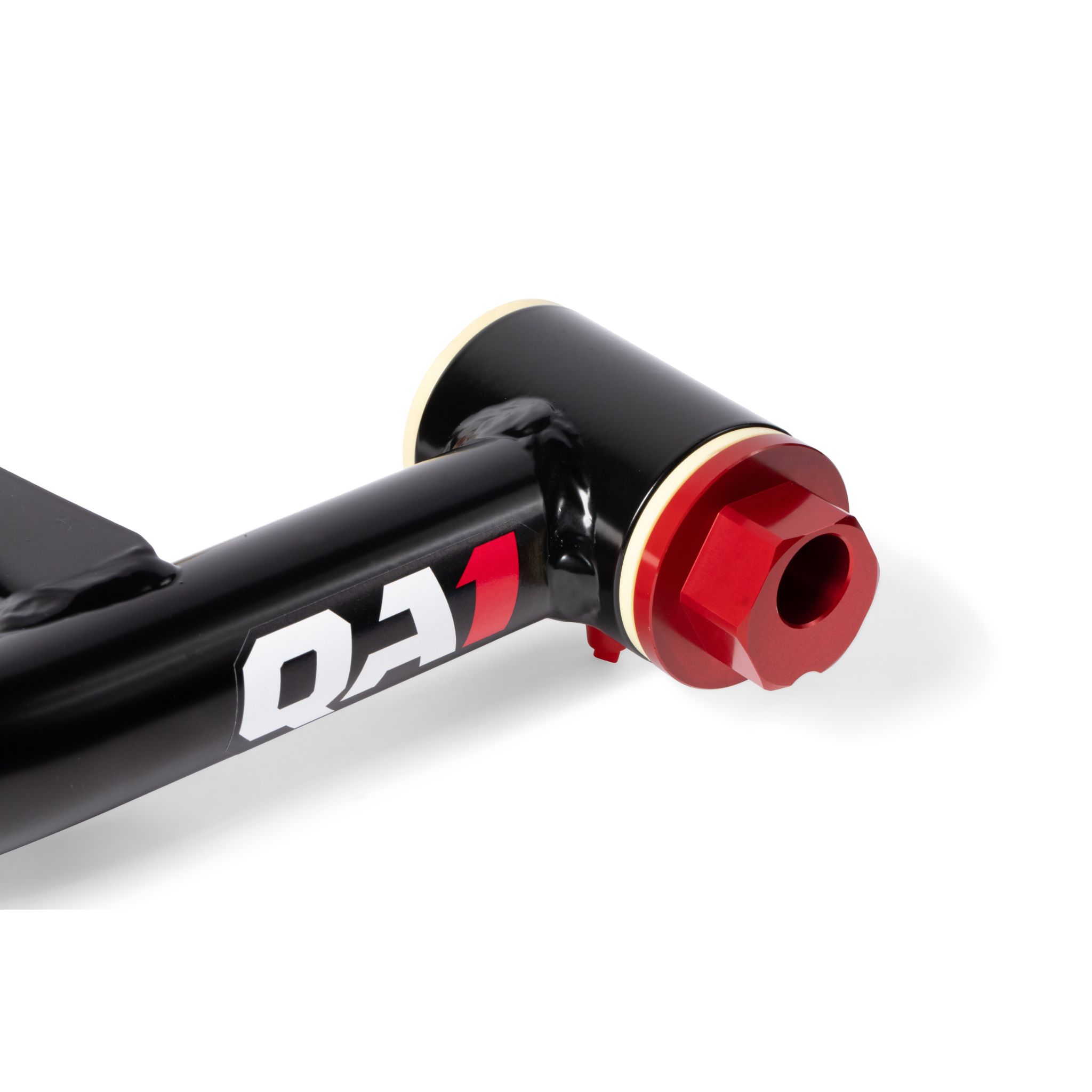 Product Overview QA1's Mustang race control arms are the perfect combination of performance and style, offering lightweight, durable construction and a clean, sleek design that will enhance the look of your Mustang. On-The-Car Adjustability QA1's unique eccentric adjustment sleeve allows for precise tuning of camber and up-to a 1/2 of track width adjustment without removing from the car, a feature not found in other control arms. Forged Ball Joint Housings A unique feature of the QA1 control arm is the forged ball joint housing. This provides exceptional reliability, strength, and durability. The low-friction ball joint ensures smooth operation, and the rebuildable, lightweight, and greaseable design makes maintenance a breeze. Ultra-Low-Friction Composite Bushings QA1's ultra-low-friction composite bushings are stiffer and provide bind-free movement, providing enhanced stability and control. They also allow for freer movement, resulting in a more responsive ride. Additionally, these bushings are much more durable than rubber bushings, making them highly resistant to wear and tear. Finally, composite bushings are greasable.for long life. Lightweight Design QA1 street control arms were designed to be the strongest, best looking control arms on the market. And weighing in at less than 8lbs per arm, this makes them among the lightest of street worthy control arms available. Easy, Bolt-In Installation Our commitment to thoughtful product design is evident in every product we produce, to deliver the highest level of performance at the track, while ensuring trouble-free compatibility. Made in the USA QA1 control arms are proudly made in Lakeville, Minnesota. Fitment Notes Control arms allow +/- 1/8 adjustment from factory length Compatible with factory and QA1 K-members Coilover struts required, not compatible with factory coil springs Fox Body control arms include adapter for SN95 spindles