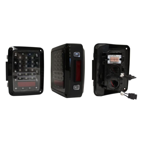 Improve the looks of any JK Wrangler with an LED Tail Light Set from RT Off-Road. These tail lights are a plug-and-play design without the need for anti-flicker or hyper flash modules to function properly. Each light features 36 LEDs for improved bulb life over the OE incandescent bulbs and increased brightness. They feature clear lenses with black bezels. Also available with red lenses.