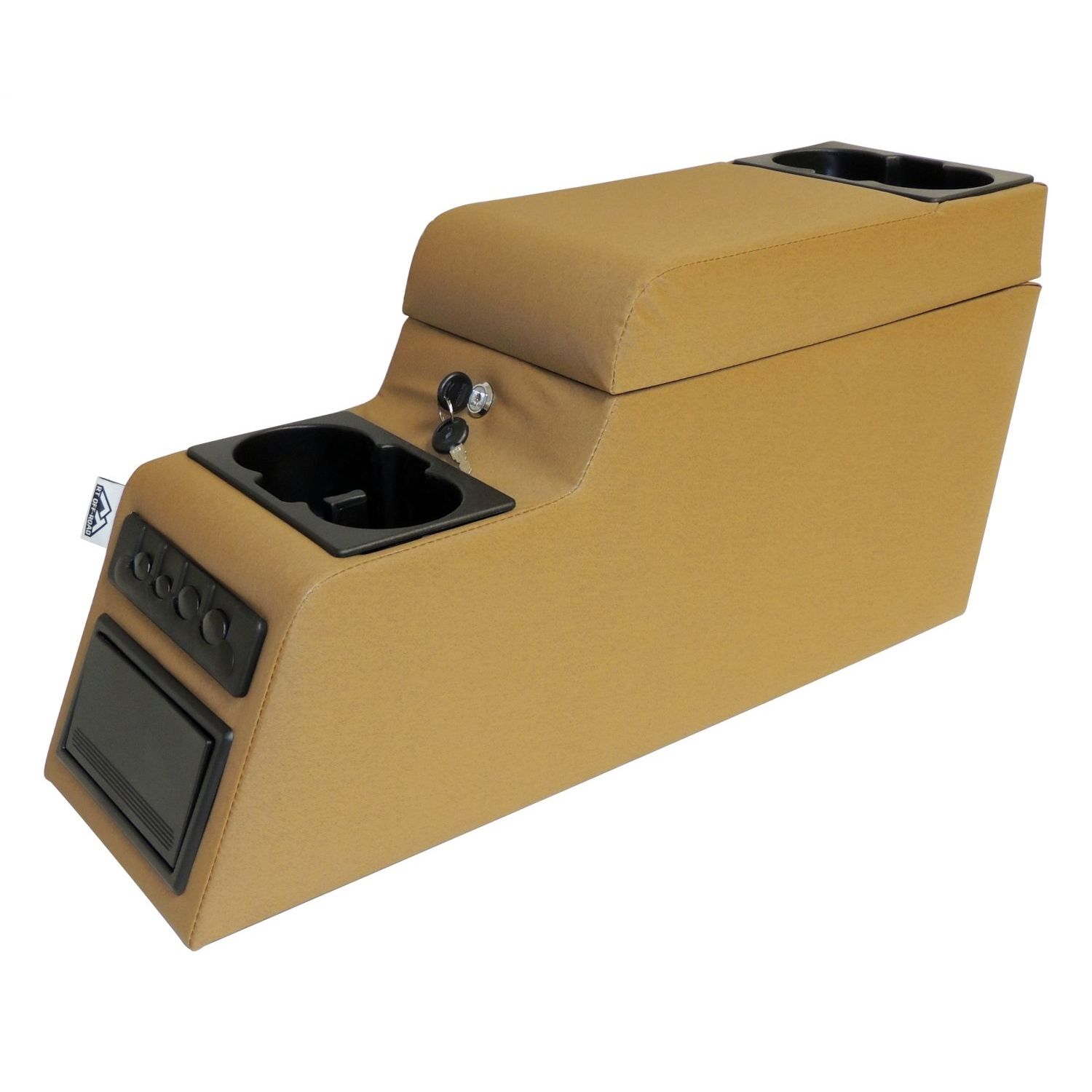 RT Off-Roads Locking Center Consoles offer protection for valuables as well as convenience in additional storage space. It features 4 cup holders, a cooler insert, and a removable storage insert. The console is gray colored with padded lids for the lockable compartments. Installation requires drilling into the floor. Each console includes keys and all installation hardware.