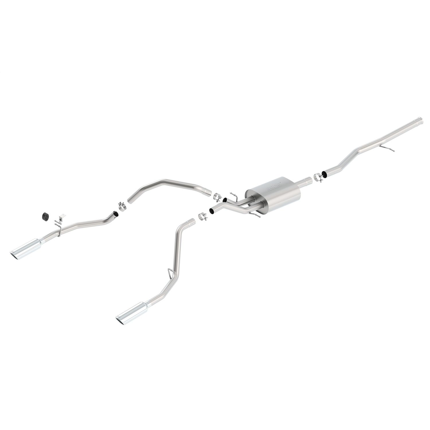 Features bright chrome on T-304 stainless steel tips. Borla(r) Cat-Back(tm) & Axle-Back exhaust systems feature patented straight-through and multi-core technology designed to unleash hidden horsepower. Increased exhaust velocity adds power, driving excitement, fuel economy, and the distinctive Borla(r) Sound of Power respected by motoring enthusiasts everywhere. Each system is built from premium T-304 stainless steel, superior to T-400 series knockoffs (such as 409), to give you the absolute best in performance and durability. Ultra-smooth mandrel bends ensure maximum flow & power, and precision computer-controlled CNC manufacturing ensures an accurate fit. Best of all, Borla(r) stands behind every system with a Million-Mile Warranty. Just what you'd expect from the world's most experienced (and most winning) exhaust brand.