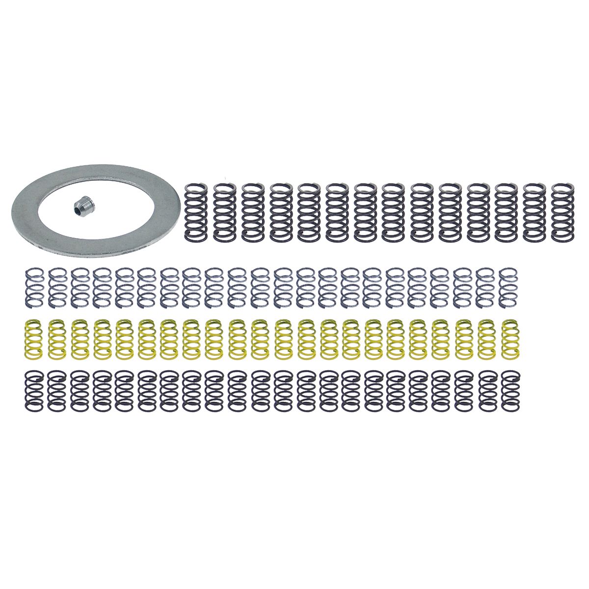 A must have for hi-rev use above 5400 RPM. This TransGo clutch spring kit includes a new 3-4 orifice capsule to mitigate the check ball leak and also provides an additional exhaust for the trapped residual oil. The springs in this kit provide the tension needed to keep the clutches from applying in 1st or 2nd at high RPM as well as providing for a cleaner forced throttle 3-2 downshift by helping the 3-4 clutch release faster. Use with original or additional clutches.