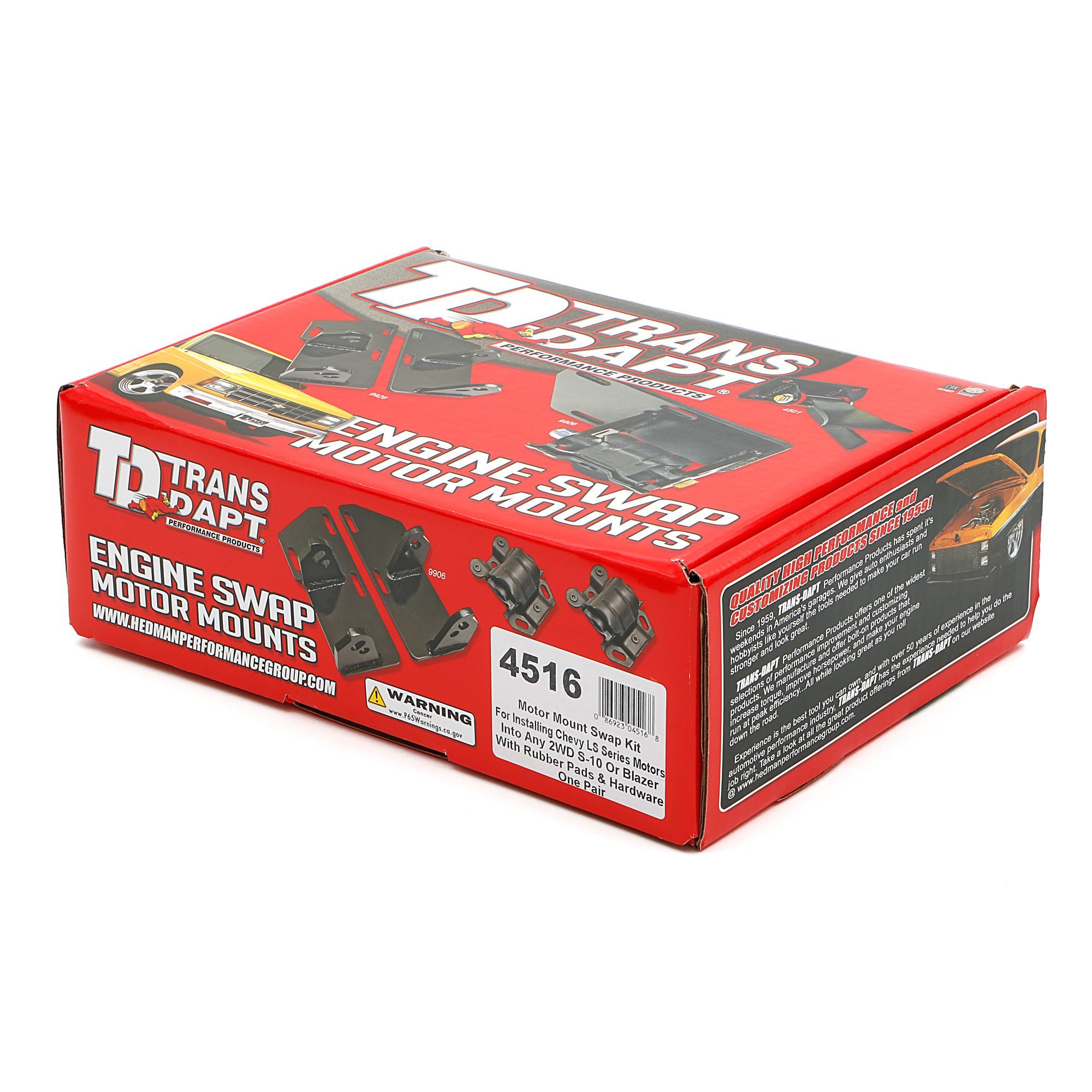 Product Details: Chevy LS1/LS6 4.8, 5.3, 6.0L V8 into S-10/S15. for a very simple install. For 2.2 or 4.3L trucks use only #4516. Pads included. Replacement mount pads: Trans-Dapt #4217