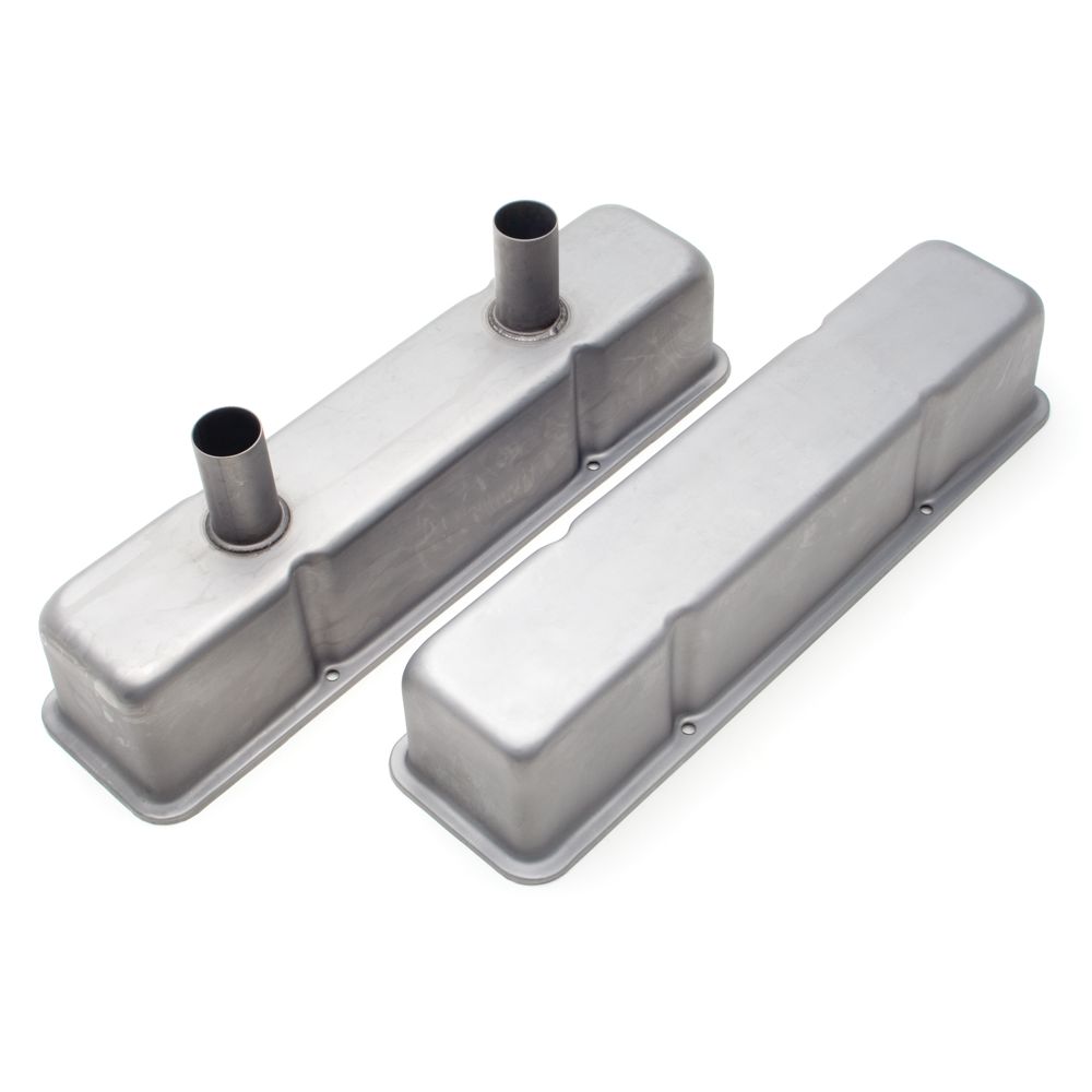 Product Details: Stamped Steel valve covers. Two tubes in driver’s side cover. Tubes are 1.375 in. O.D. and 3 in. tall.