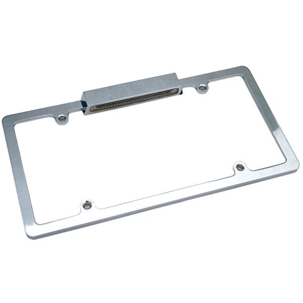 Product Details: Deluxe License plate frame with llight made with chrome plated cast steel.