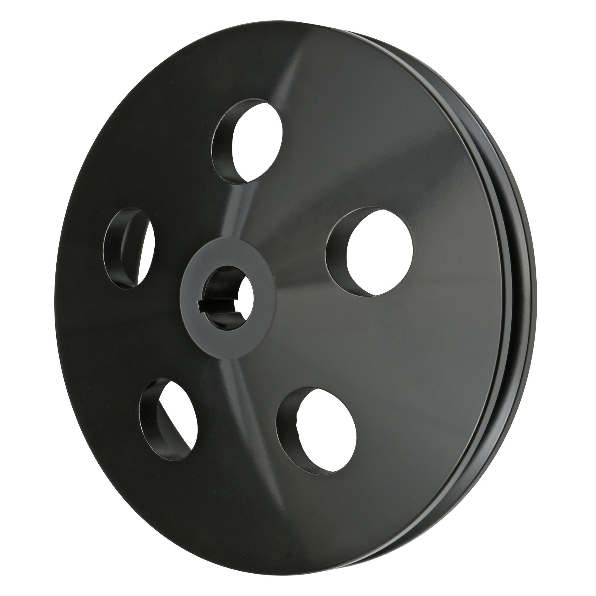 Trans-Dapt's quality aluminum pulleys are made using 356 aluminum alloy and heat-treated to T-6 specs. They are the perfect complement to Trans-Dapt aluminum valve covers, water necks, breathers and brackets. Many Trans-Dapt aluminum pulleys are now available with a great looking black finish. Water pump pulleys come complete with mounting bolts. crankshaft pulley bolts are sold separately.