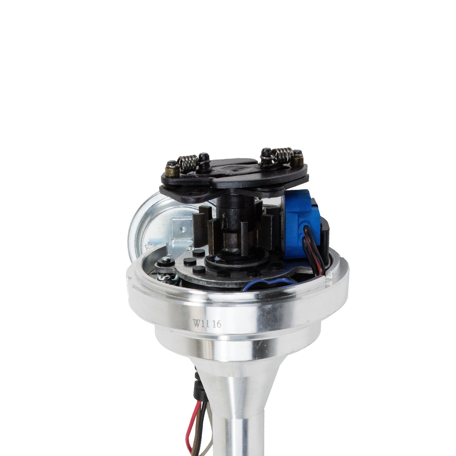 TSP Pro Series Ready to Run Distributor is perfect for a street performance upgrade. It features a CNC-machined billet aluminum body and hardened steel shaft, with a sealed ball bearing on top and a sintered steel bushing on the bottom. It also comes with a fully adjustable mechanical advance, vacuum advance, magnetic pickup trigger, and a high-output circuit board module with digital tach output. The dielectric cap comes with solid brass terminals and a color-matched wire retainer.