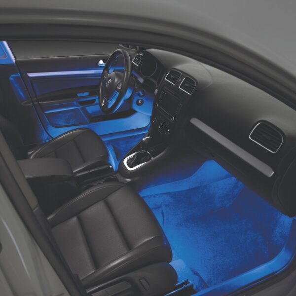 TYPE S vehicle lighting kits come with bright, flexible, adhesive-backed LED strips that are water-resistant. Designed with first-to-market, 4-pin Plug & Glow connection points, this TYPE S LED kit can extend up to 12 feet. Conveniently power the LED strips with the included the 12V power adapter, or 12V hardwire options to the fuse box. Extension accessories and fuse adapter not included.